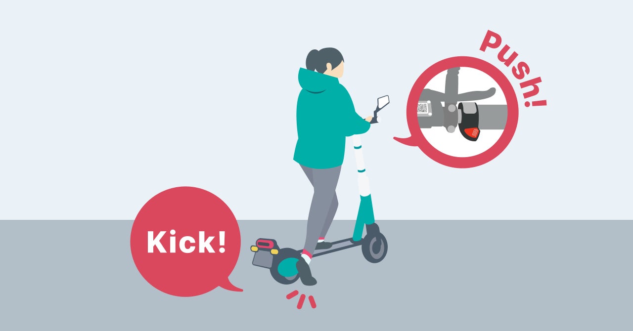 4. 今回の特例措置下において、電動キックボードを押し歩きする場合には歩行者とみなされます。走行量の多い道路などを右折する場合には、交差点で電動キックボードを一度降り、横断歩道を押し歩いて渡ってください。