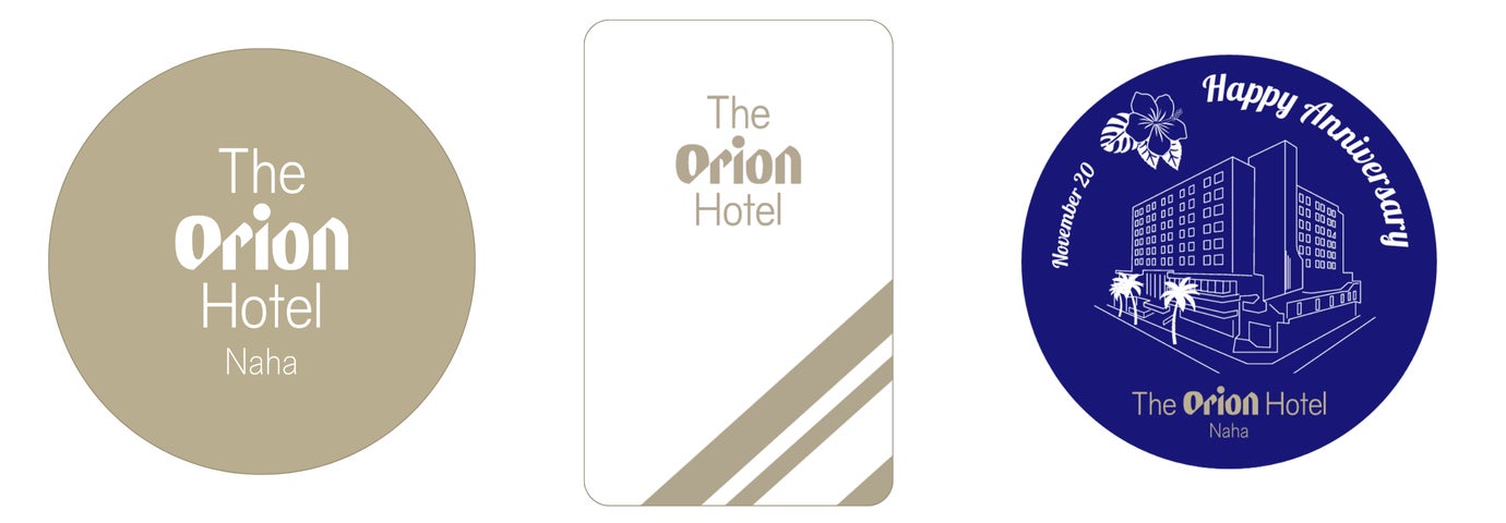 期間中にご宿泊をいただいた全てのお客様に1周年を記念した、オリジナルデザインステッカーのプレゼントをご用意しています。ステッカーは「オリオンホテル 那覇」のロゴを印字したデザイン2種類と、ホテルの外観にHappy Anniversaryのメッセージを掛け合わせたデザインの合計3種類から1つをお選びいただけます。