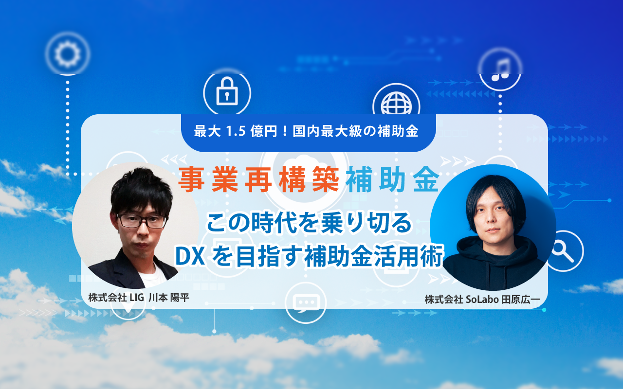 株式会社SoLabo(本社:東京都千代田区、代表取締役:田原広一)は、株式会社LIG(本社:東京都台東区、代表取締役社長 兼 CEO:大山智弘)と共同で、事業再構築補助金をテーマとした無料セミナーを開催いたします。本セミナーでは、システム開発を検討している企業に向け、事業再構築補助金の概要や活用事例をご紹介します。