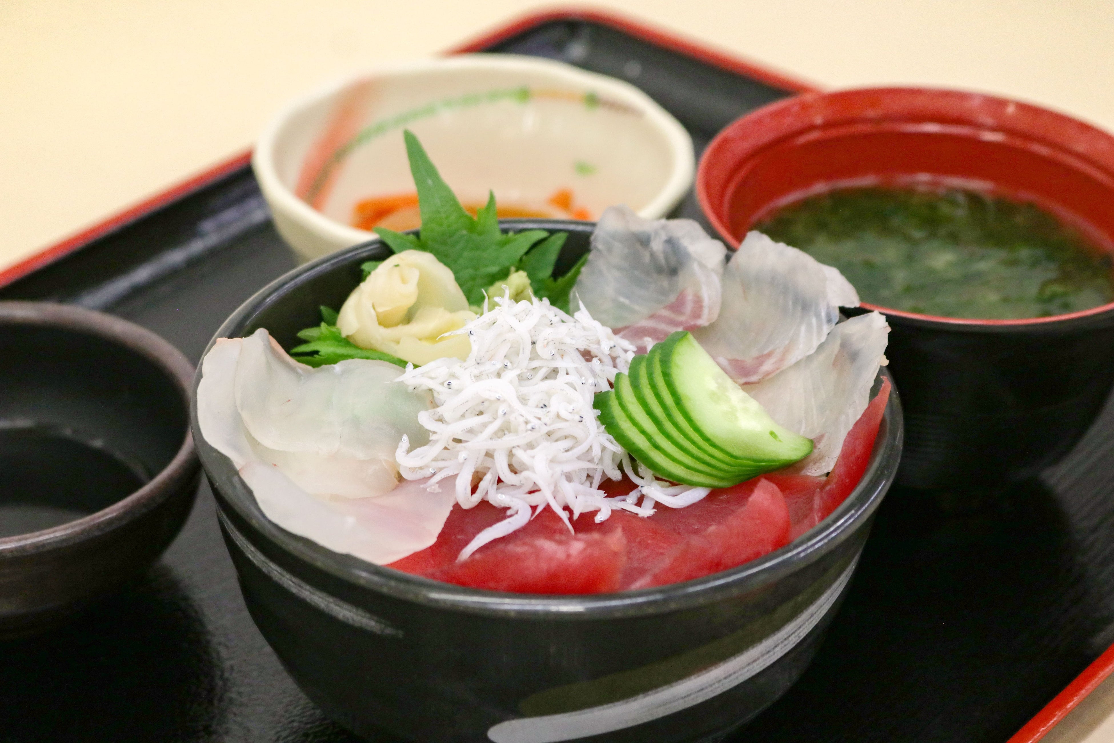 仲卸が運営する寿司○(まる)では、鮮度抜群の海鮮丼が人気。