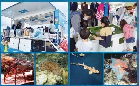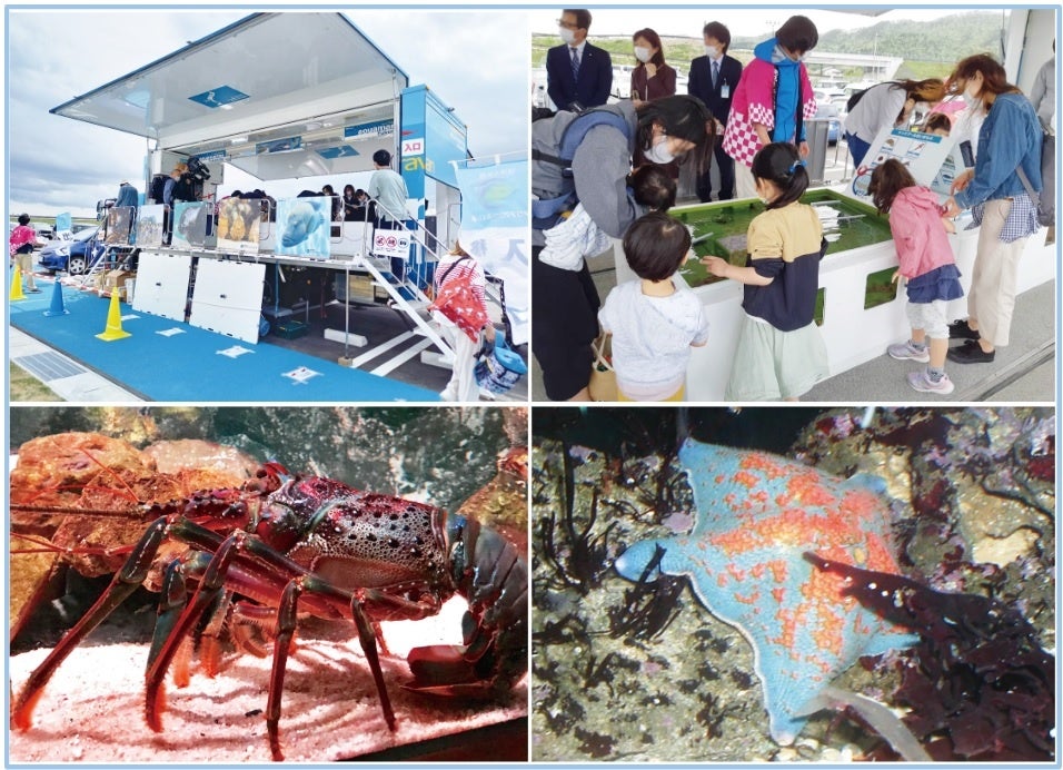 タッチ水槽では、伊勢海老や、ヒトデ、ウニ、ナマコなど実際に触れることができます。