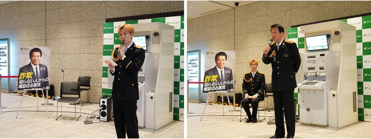 杉 良太郎 特別防犯対策監、橘 慶太 特別防犯支援官 ゆうちょ銀行との新しい還付金詐欺等の対策/ATMでの携帯電話使用に警告表示開始