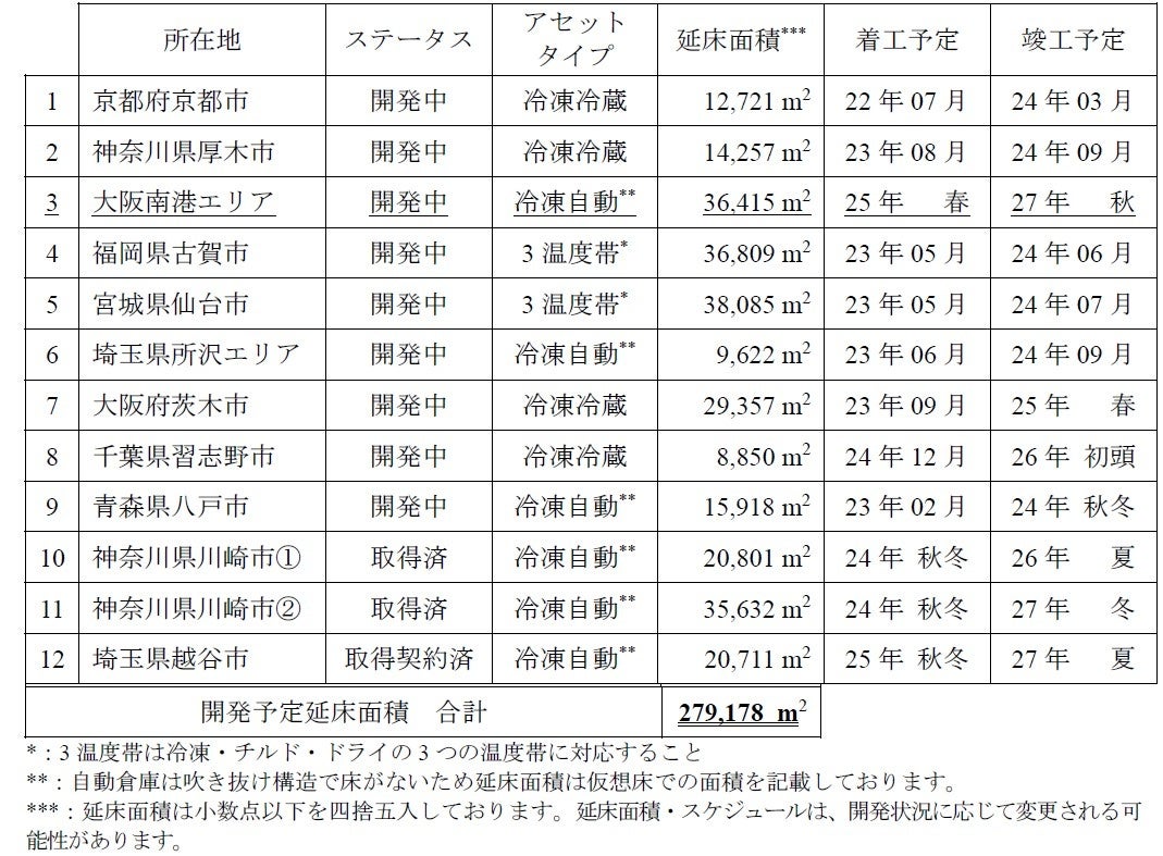 ■霞ヶ関キャピタル物流施設開発予定物件一覧