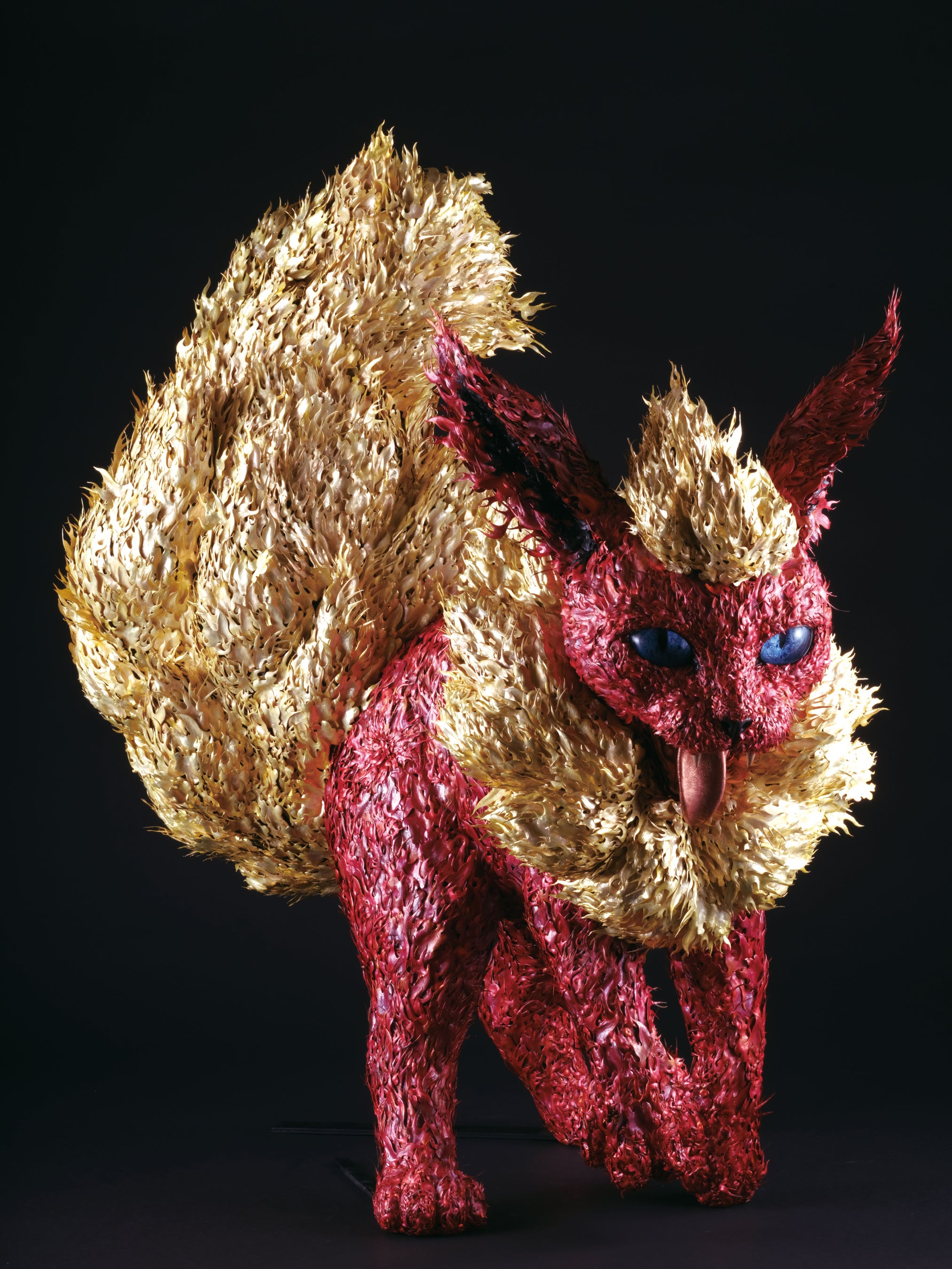 工芸の技がポケモンを思いがけない物質のなかから呼び起こしました。それぞれの作家が日頃から向き合ってきた金属、土、木などの素材研究、そして長年の鍛錬による優れた技術の成果が、ポケモンのフォルムはもちろん、皮膚や毛並み、仕草や表情に抽出され、また気配や出現の瞬間をも見事に捉えています。