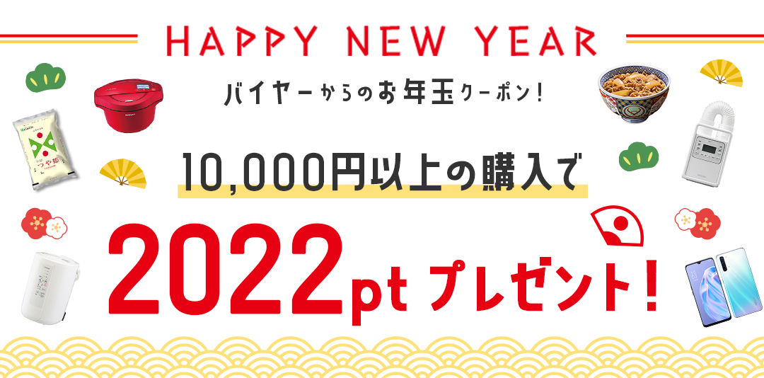 対象商品のお買い物合計金額が10,000円(税込)以上で使える2,022ポイント付与クーポンを進呈します。本クーポンは商品ページで入手できます。なお、対象商品は特設ページでご確認ください。
