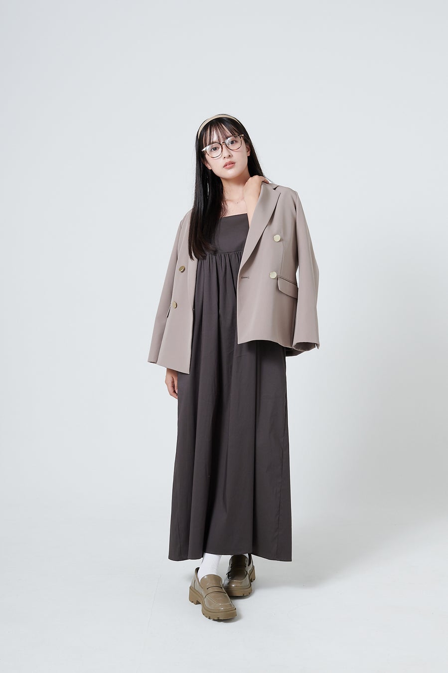 オフィスの雰囲気が一変する秋の始まりは、きちんと見えするコーデで気を引き締めたい。秋らしいカラーのジャケットは、旬顔になれるのはもちろん、ONモードに格上げしてくれる優れもの。ノンストレスでデスクワークに励めるキャミワンピとの相性も抜群。マニッシュなジャケットに、甘めキャミワンピをあわせて洗練度高めスタイルに。