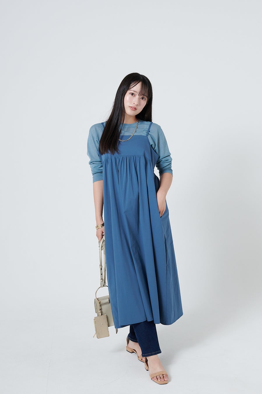 インナーならノースリーブ、半袖、長袖もOK。中に着ても上に重ねてもいいし、アウターやボトムスでも、何を重ねてもサマになるんです。“キャミワンピで重ね着に目覚めた!”なんていう人もいるくらい、重ね着の楽しさを教えてくれるのも、キャミワンピのいいところ。