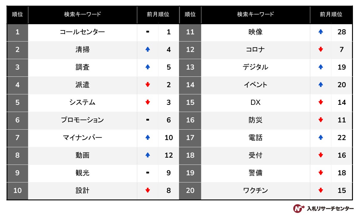入札案件 検索キーワード 2023年8月の第1位は前月同様に「コールセンター」となりました。