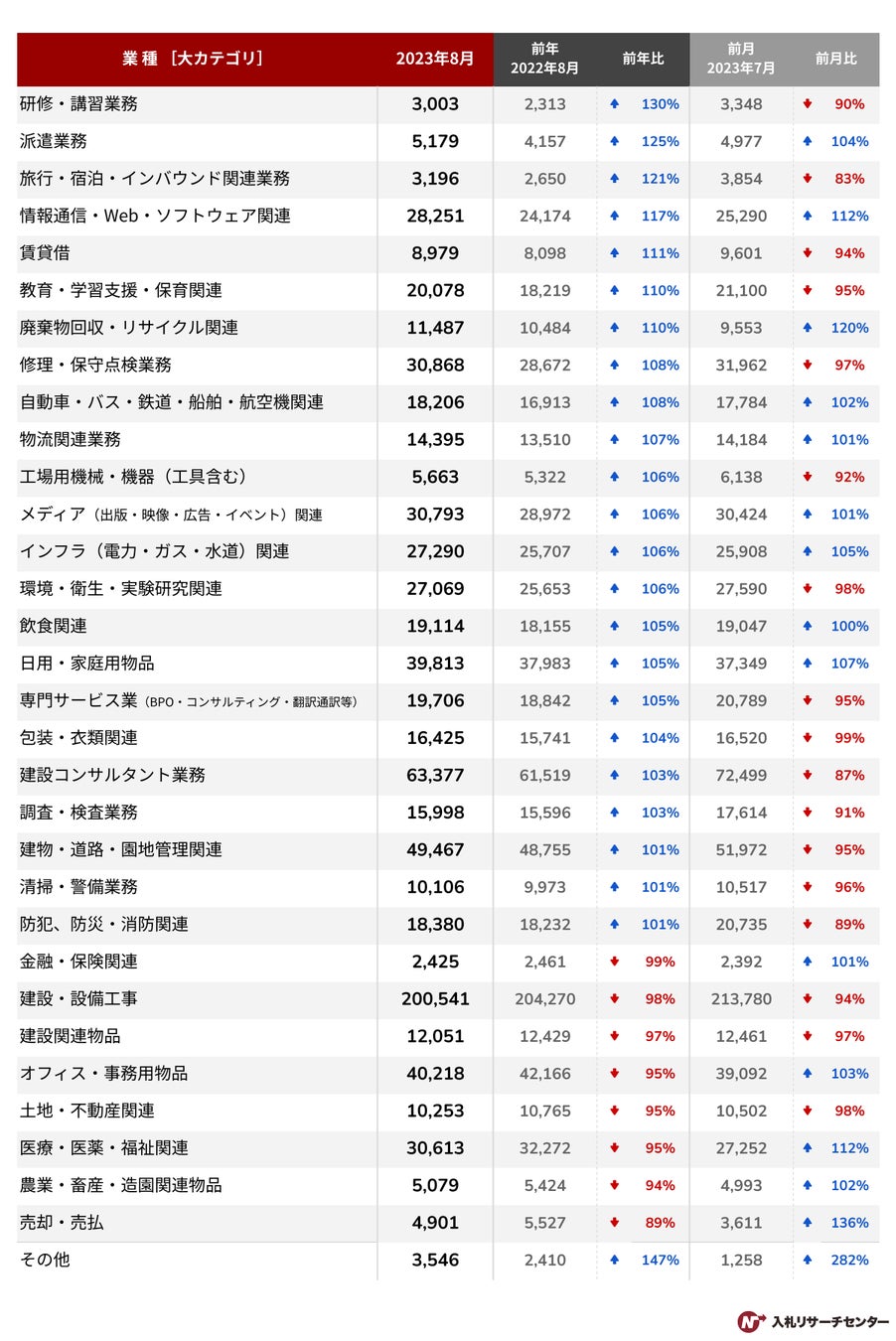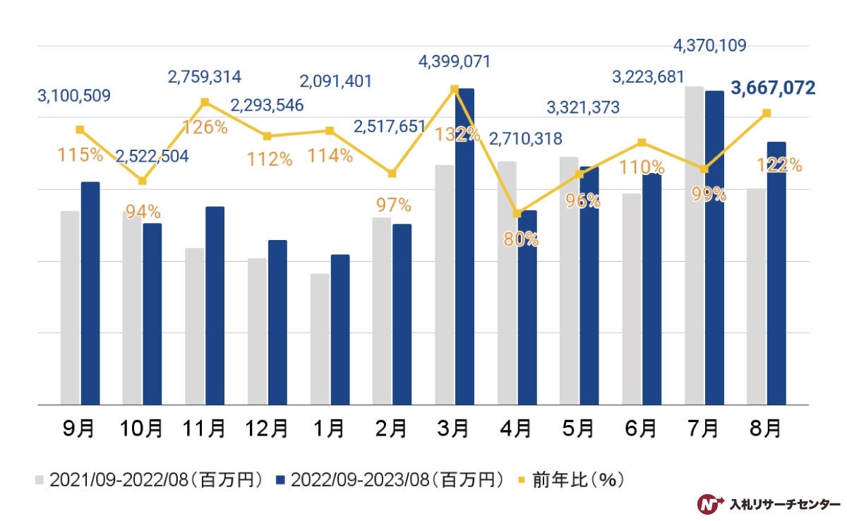 調査名:入札リサーチセンターマンスリーレポート(2023年8月度)