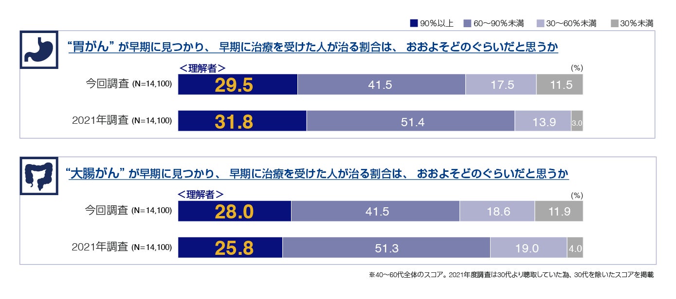 「胃・大腸がんの早期発見・早期治療による治癒率は90%以上」、しかし認識率は3割未満 早期発見によるメリットは、未だ多くの方に認識されていない実態が明らかに