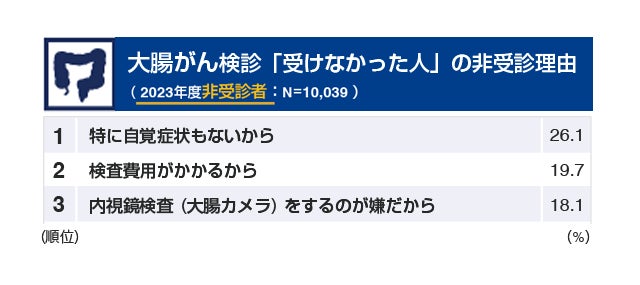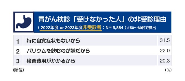 胃・大腸がん検診非受診者のうち、約30%が非受診理由として 「自覚症状がないから」と回答