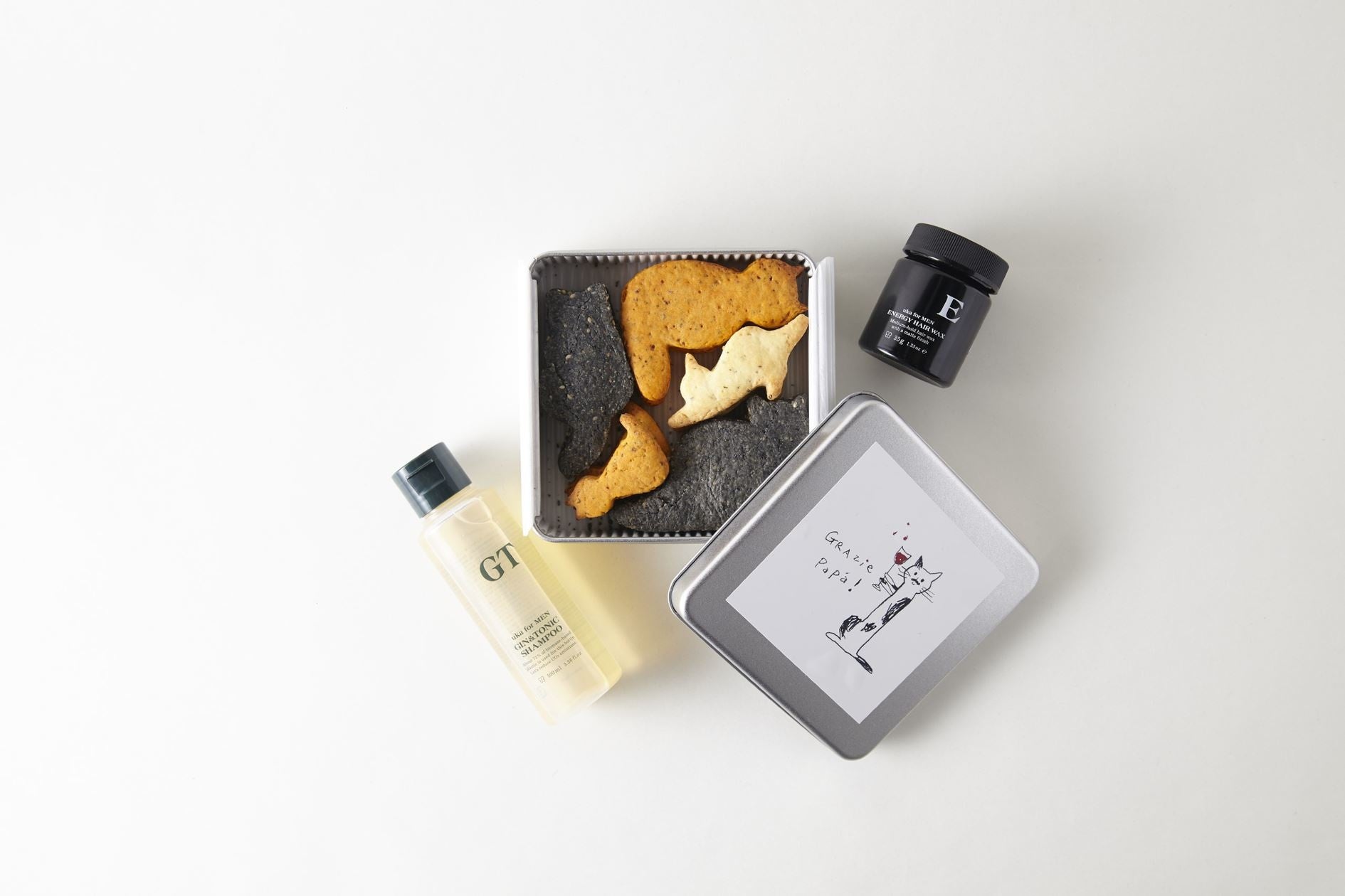 父の日限定三毛猫クッキーと、メンソールの冷感が心地よいスカルプトニックをセットに。