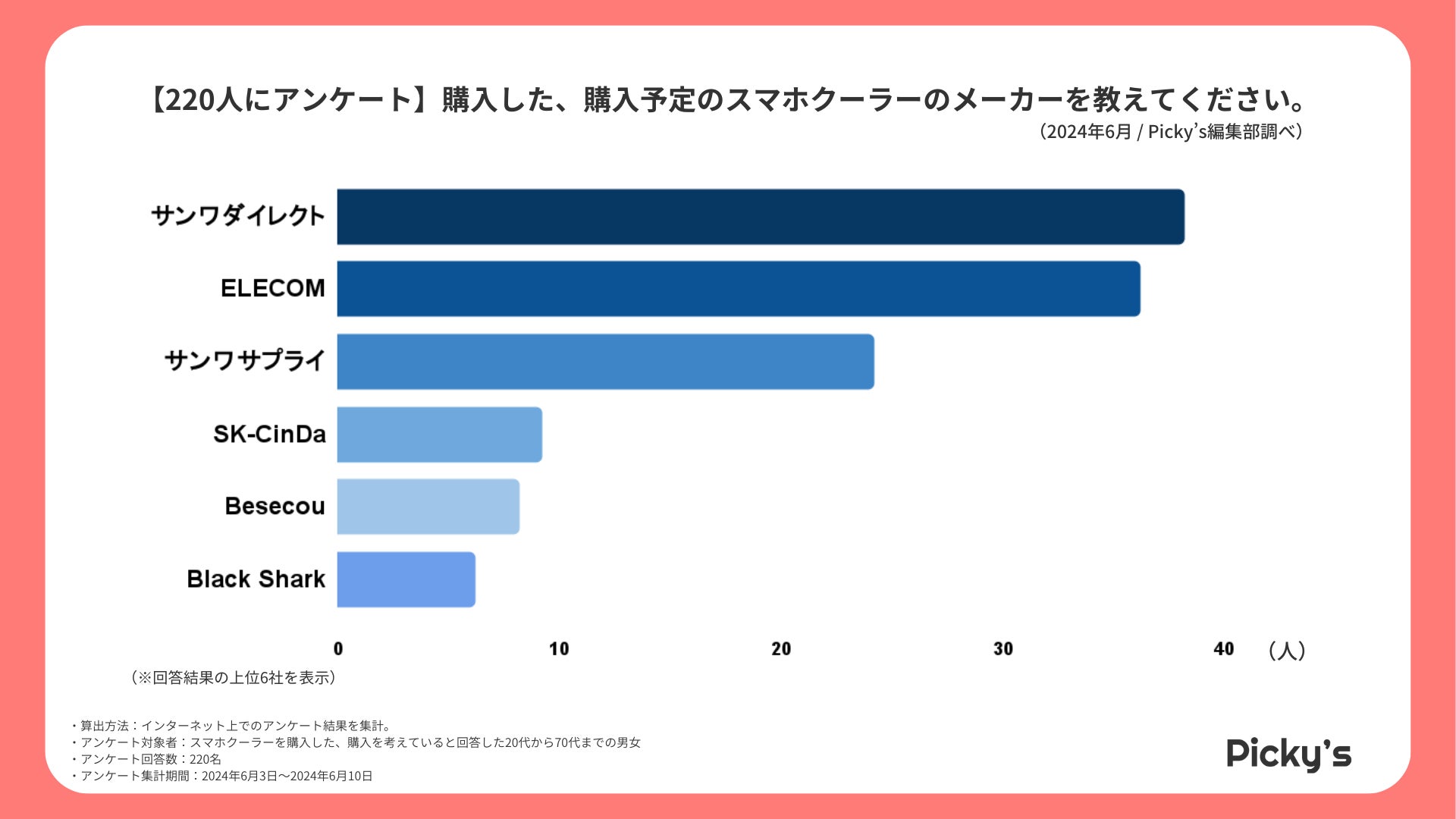 「Picky’s」は、インターネットショッピングにおいて、購入前に試せない・選ぶべきものがわからないという課題の解決を目標に、あらゆる商品のおすすめランキングや検証レビューを紹介するサイトです。このたびPicky’s(https://rentry.jp/)では、夏需要に先駆けて、スマホクーラーについてインターネット上でアンケート調査を行いましたので発表いたします。