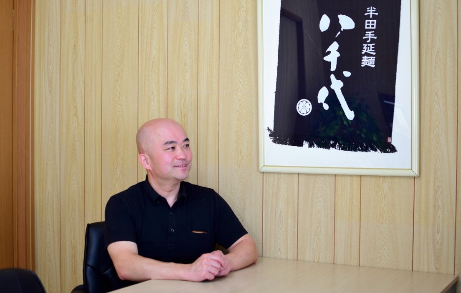 現在、町内で半田そうめんを製造しているのは約30軒。その一つである「半田手延麺 八千代(はんだてのべめん やちよ)」は、全国的にも珍しい国産素材100%、添加物不使用の麺づくりにこだわり、県内外から多くの支持を集めています。2020年5月に、新型コロナウイルス感染症拡大の影響を受けて一度は廃業してしまった八千代。しかし、県内で不動産業やコンサルティング業などを行う「株式会社そらにわ」代表の森和也さんが事業を承継し、同年11月に復活を遂げました。