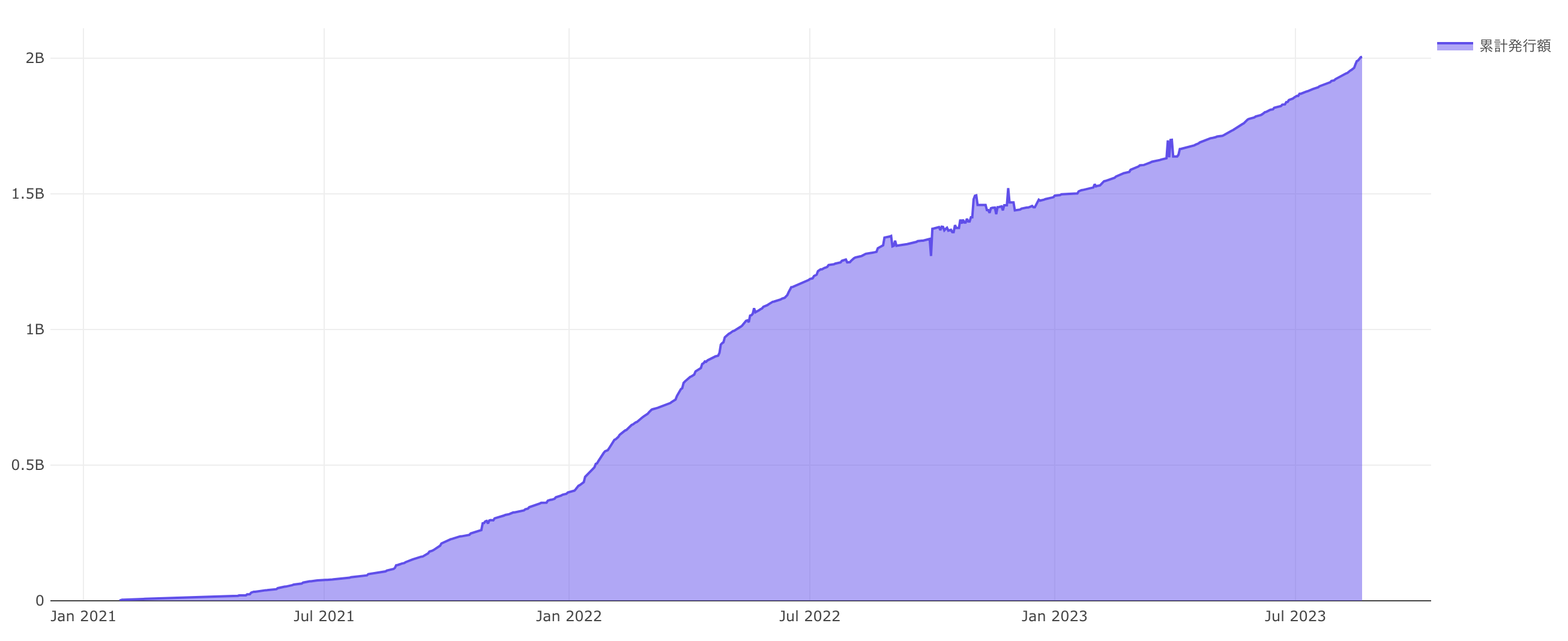 2021年1月27日に発行を開始してから、2023年8月には20億円を超えるJPYCが発行されました。