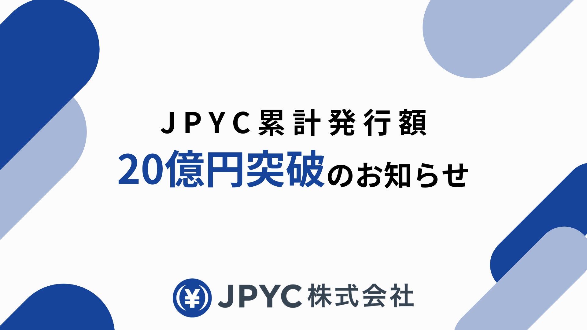 日本円ステーブルコインJPYC|累計発行額が20億円を突破 !!!