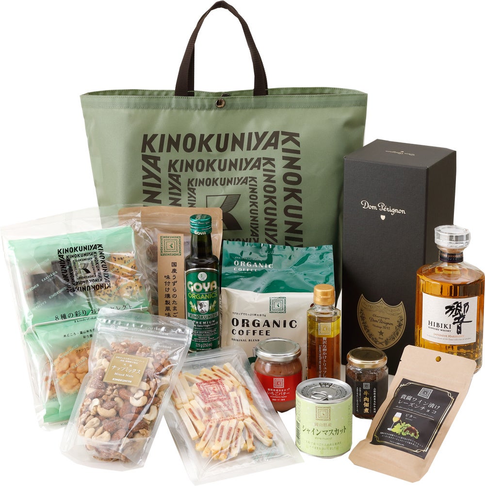 8種の彩りおかきセレクト、大粒ナッツミックス 徳用、国産うずらのたまご 味付け燻製風味、GOYAオーガニックEXVオリーブオイル、焼チーズサラミ(大袋)、オーガニックドリップコーヒーオリジナルブレンド14P、福岡県産あまおう®いちごバター、贅沢な卵かけトリュフしょうゆ、シャインマスカット缶詰、牛肉佃煮、貴腐ワイン漬けレーズンチョコビター、ドン ペリニョン’13、