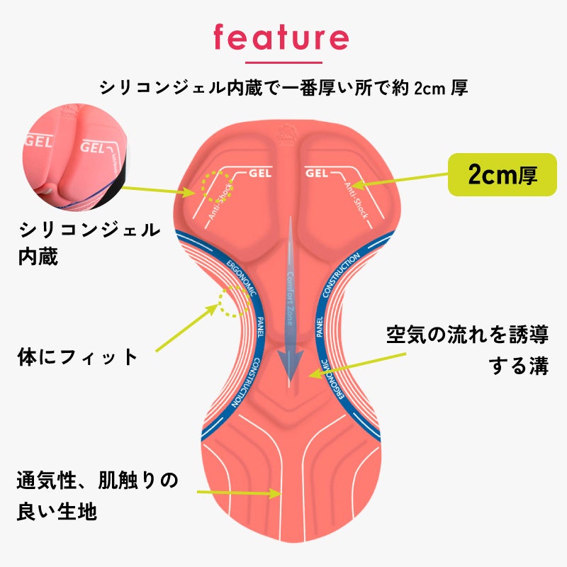 オールシーズンでサイクリングに最適な万能サイクルパンツです。両サイドにメッシュのポケット付き.サドルとお尻の間に超極厚3Dメガパッドがある事により、お尻の痛みを軽減します。