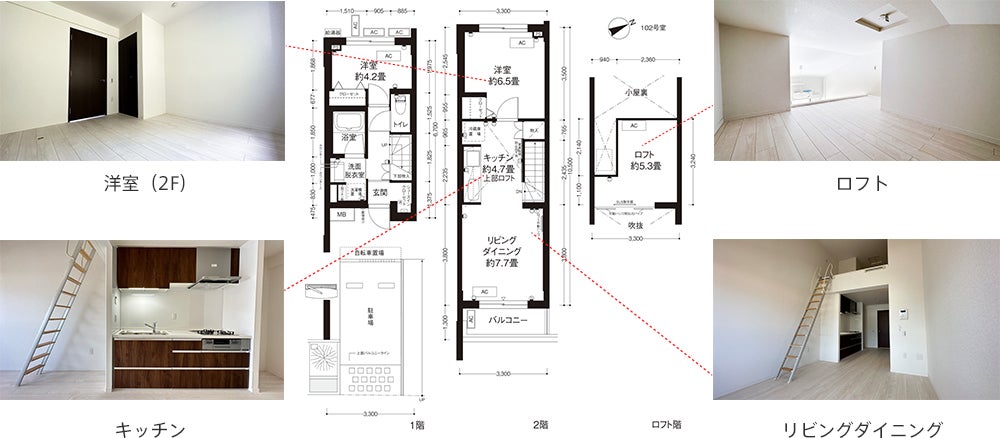 (2)全住戸メゾネットタイプ ロフト・専用駐車場付き