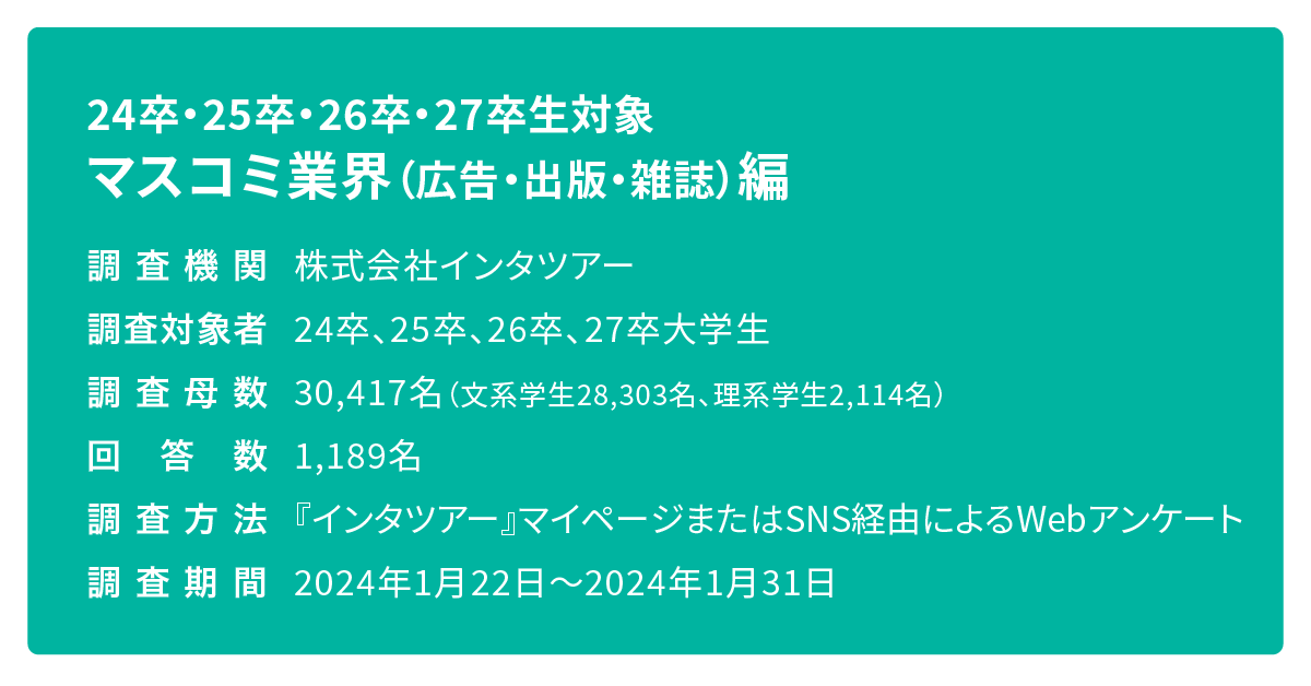 『24・25・26・27卒生対象 業界別イメージ調査 マスコミ業界(広告・出版・雑誌)編』