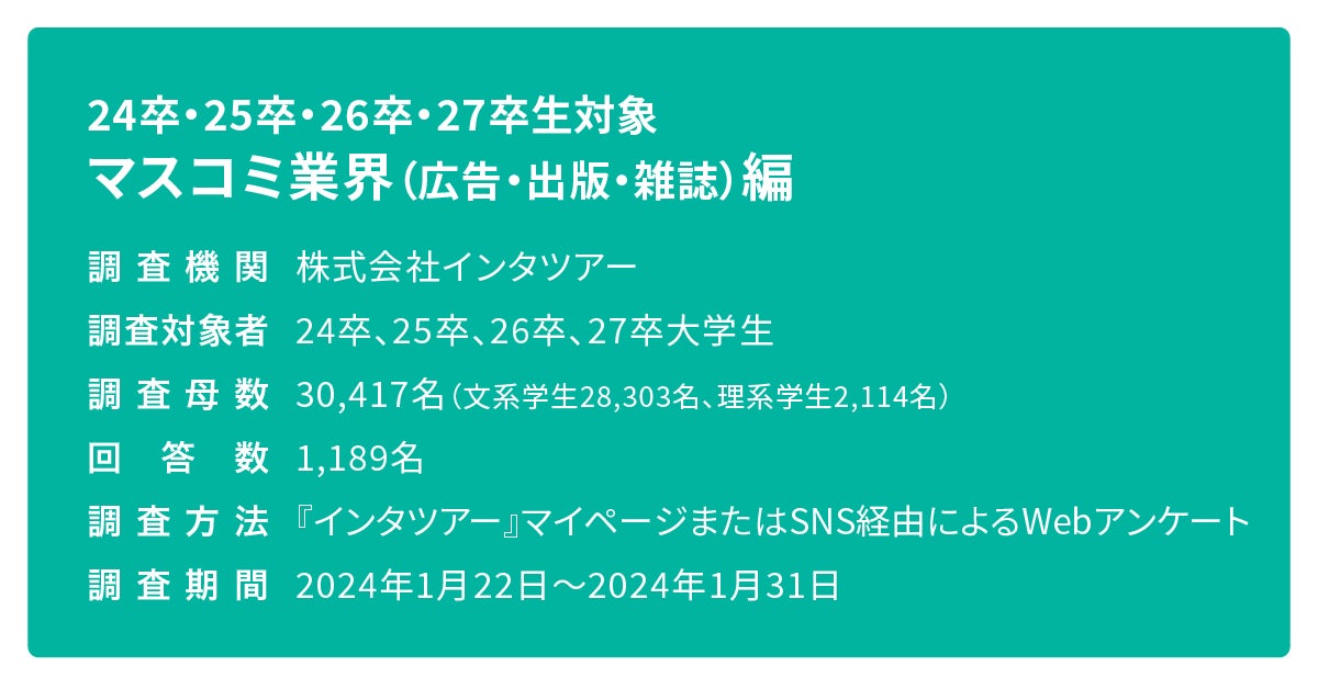 『24・25・26・27卒生対象 業界別イメージ調査 マスコミ業界編』2024年1月実施 株式会社インタツアー