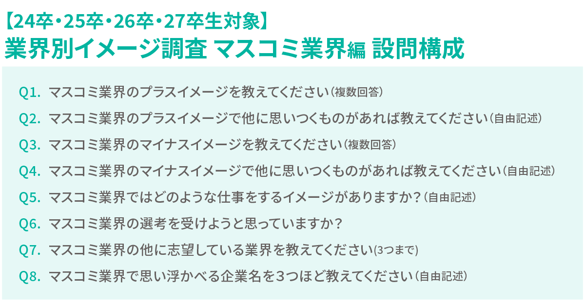 24・25・26・27卒生対象 業界別イメージ調査 マスコミ業界編 設問構成