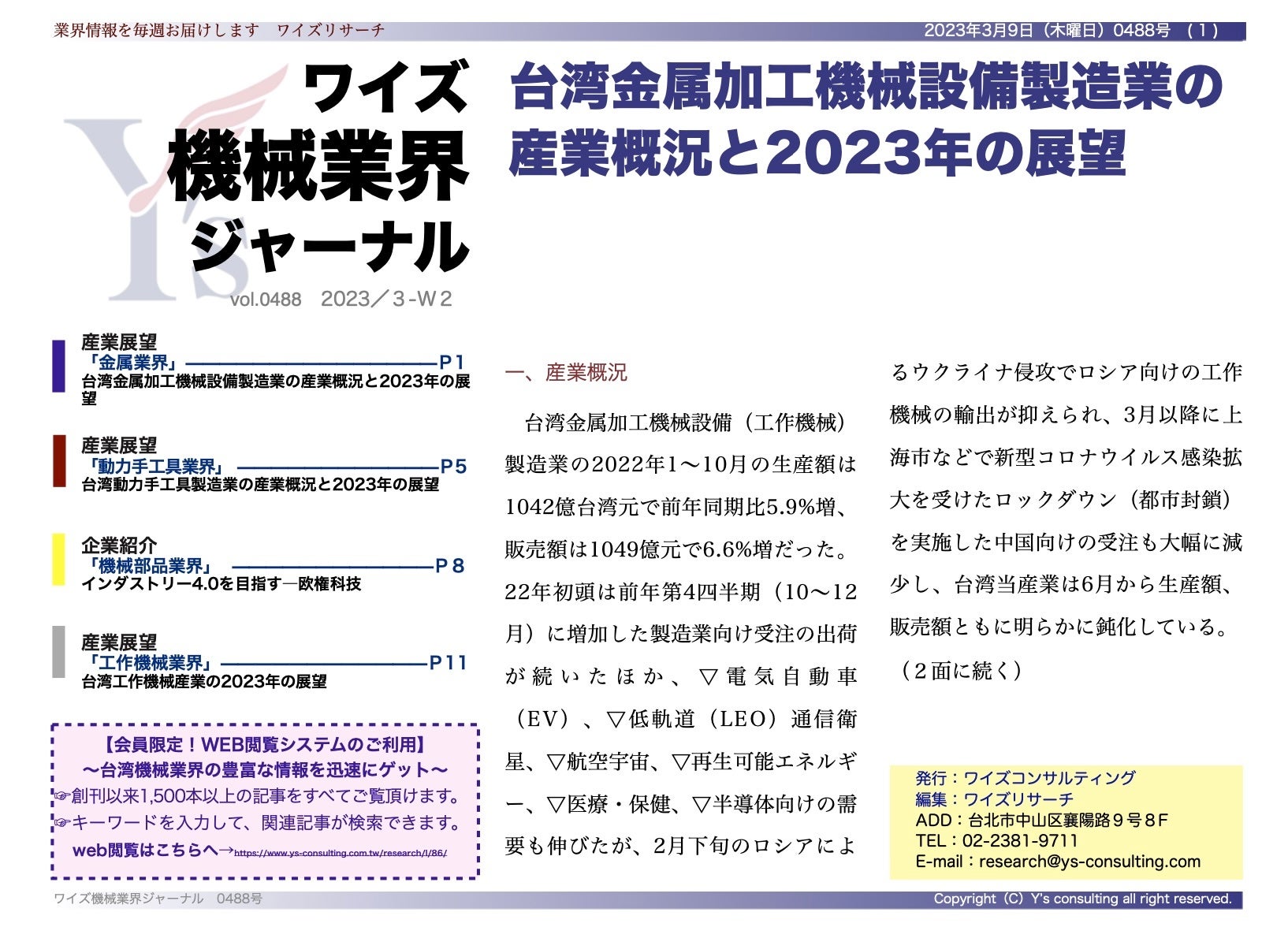 台湾工作機械産業の2023年の展望<ワイズ機械業界ジャーナル2023年3月第2週号発行>