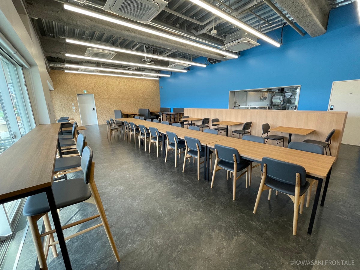 Anker フロンタウン生田において、夜にアカデミー生(川崎フロンターレの下部組織)が利用するカフェテリアを、朝から夕方までコワーキングスペースとして提供します。地域住民やファン・サポーターのテレワーク利用を想定し、電源・Wi-Fi完備、外付けモニターも提供します。出社とテレワークのハイブリッドなワークスタイルが定着しつつある中で、自宅では集中できない方にピッタリなスペースです