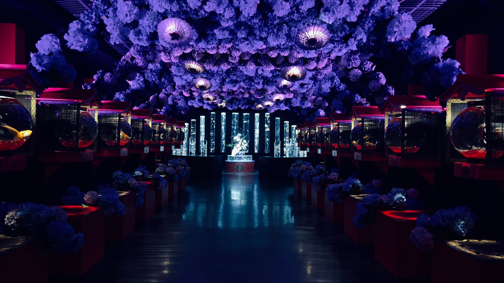 \紫に染まるアートアクアリウムは、まさに初夏を五感で楽しめる華麗なアート空間に!/