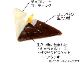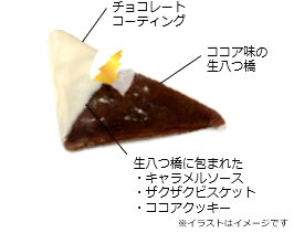 がイベント限定で登場します。ココア味の生八つ橋で濃厚なキャラメルソースとブラックサンダーに使用されているザクザクビスケット、ココアクッキーを包み、チョコレートをコーティングしました。ブラックサンダーとおたべのもちもち感が合わさった「ザクもち食感」とコテコテなキャラメルの味わいをお楽しみください。