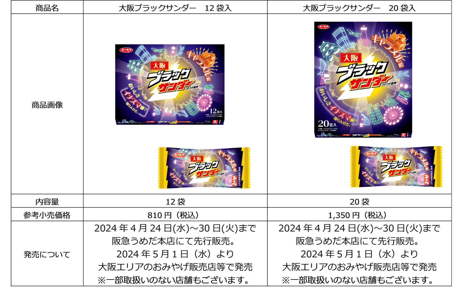 また、本商品の発売を記念し、4月24日(水)~30日(火)まで1週間の期間限定で阪急うめだ本店にて先行販売イベントを開催いたします。大阪ブラックサンダーはもちろん、今年のバレンタインイベント限定で展開し、全日完売となった「生ブラックサンダークラシック」や京都銘菓おたべとコラボした「大阪ブラックサンダーおたべ」の数量限定販売も行います。