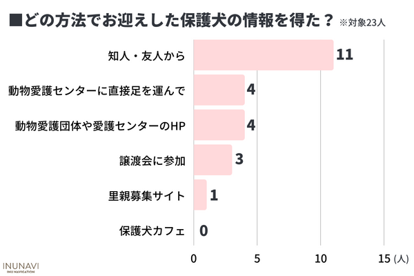 - お迎えした保護犬の情報は「知人・友人から」が11人で最多