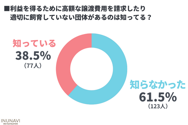 - 悪質な動物愛護団体の存在を「知らなかった」人が61.5%