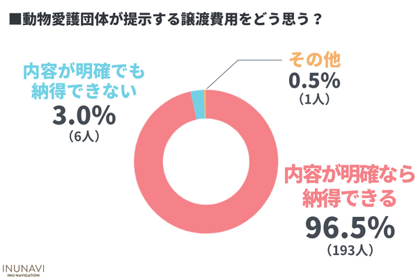 - 動物愛護団体の譲渡費用は「内容が明確なら納得できる」96.5%で圧倒的に多い結果に