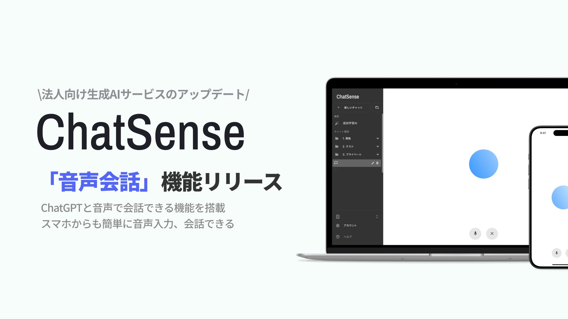 株式会社ナレッジセンスは、セキュリティ高い環境でChatGPTを活用できる法人向け生成AIサービス「ChatSense」を提供しております。この度ChatSenseは、GPTと音声で会話できる機能をリリースしたことをお知らせいたします。これは米OpenAI社のChatGPTに搭載されている「高度な音声モード」に類する機能であり、タイムラグなく非常に自然な会話が可能です。多言語対応もしており、通訳や英会話の練習での活用が期待されます。
