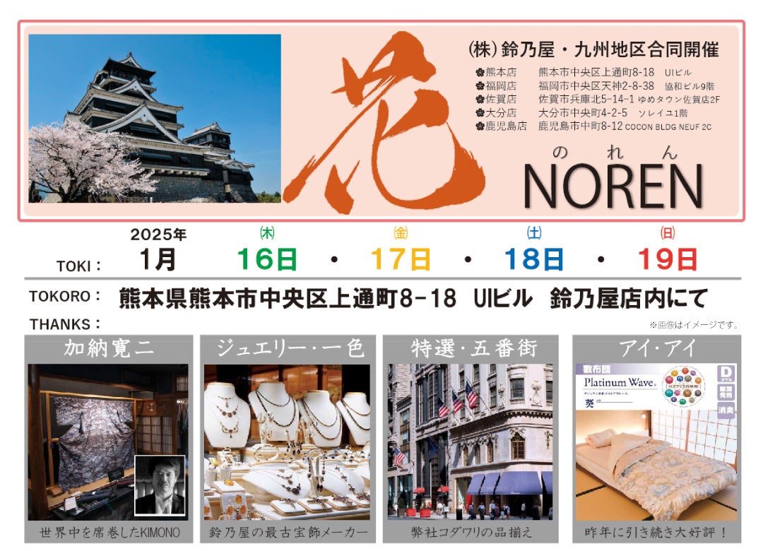 (株)鈴乃屋、九州地区合同イベント【花のれん】を熊本店で開催!2025年1月16日(木)から1月19日(日)まで
