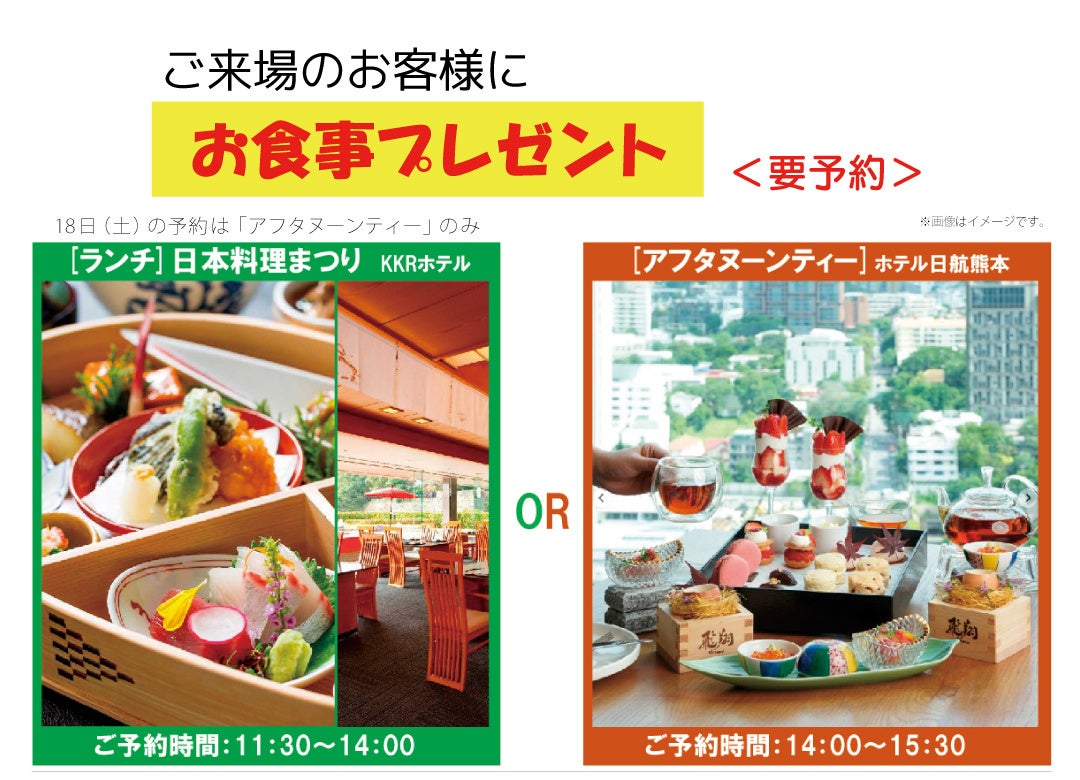 ※18日(土)はアフタヌーンティー(ホテル日航熊本)のみとなります。