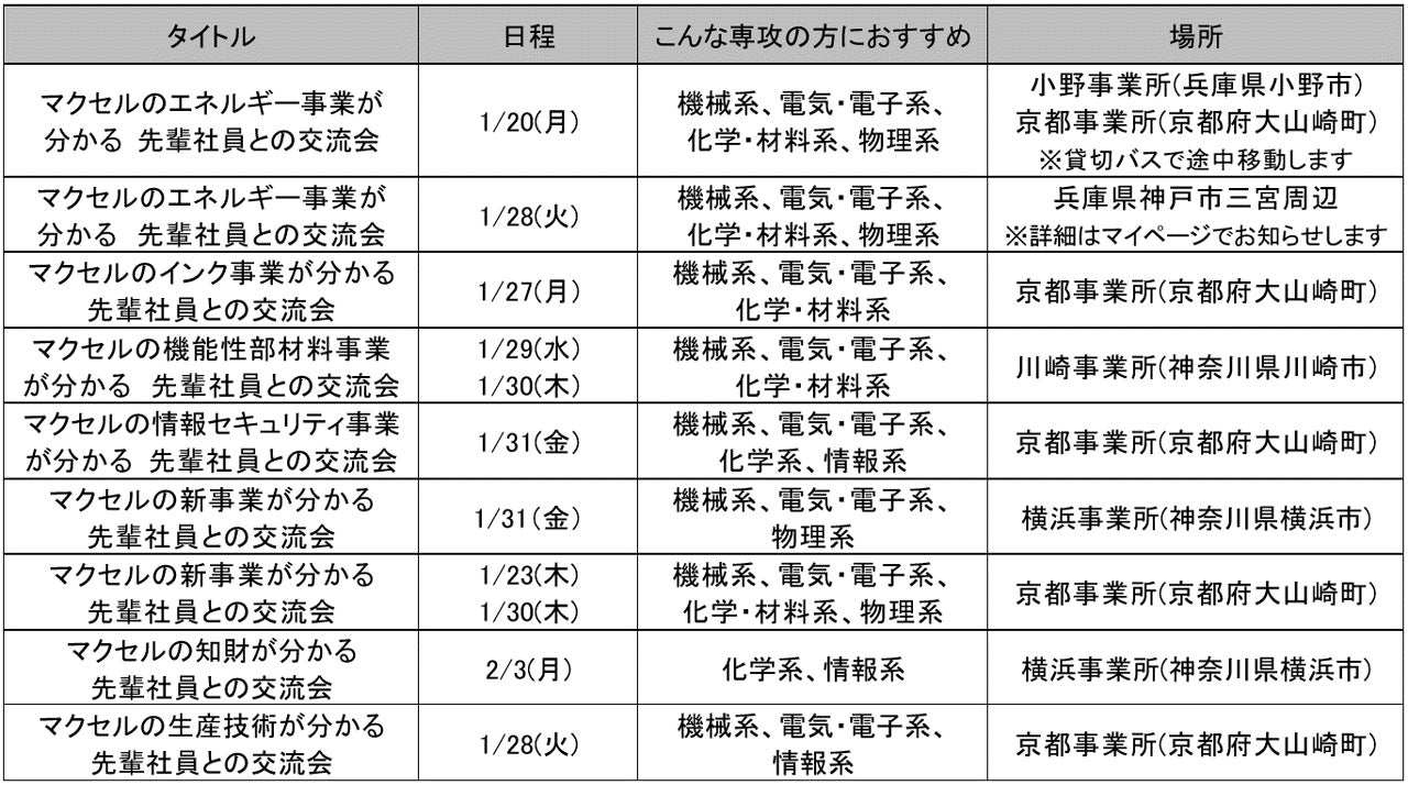 マクセル株式会社(以下、マクセル)は、2026年卒業予定(現大学3年生、現大学院1年生)の方を対象に、冬季オープン・カンパニーを開催します。