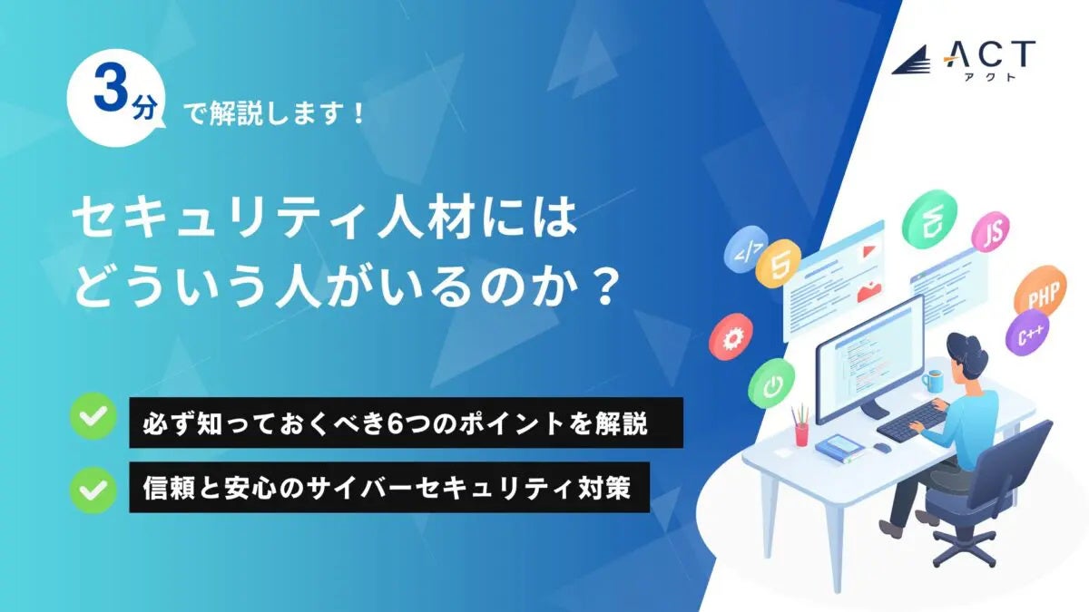 今年30周年を迎え、サイバーセキュリティ事業などを行う株式会社アクト(本社:東京都文京区、代表取締役CEO 小林 智彦 、以下 アクト)は【3分で解説!セキュリティ人材にはどういう人がいるのか?】のホワイトペーパーを公開しました。