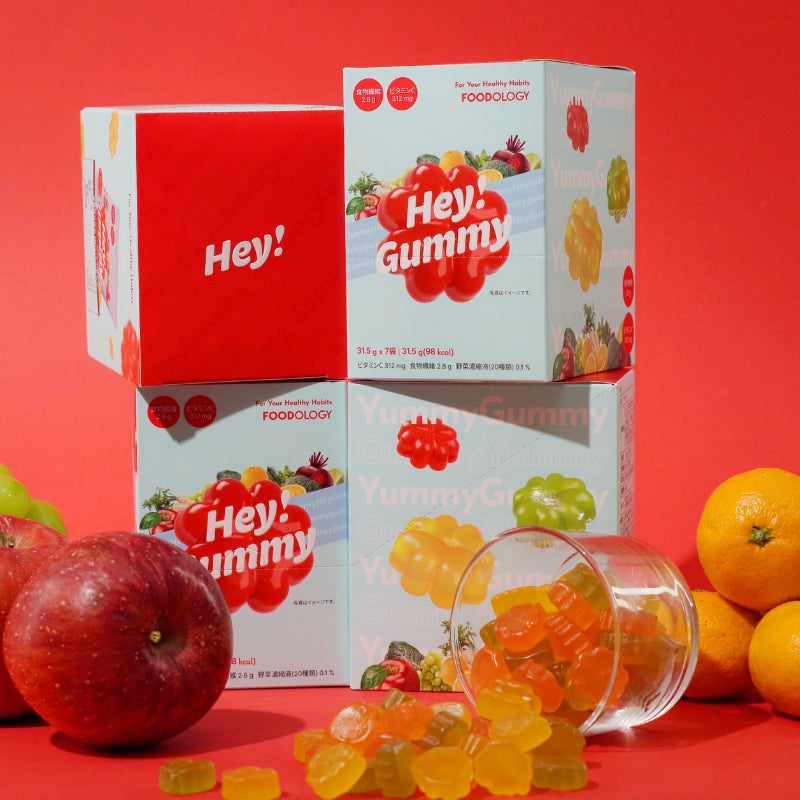 おやつ感覚で楽しめる「ヘイ! グミ」は、味が美味しいのはもちろん、日々の栄養バランスにも