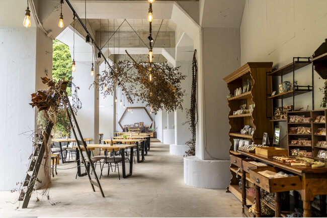 太平洋の絶景を臨みながら、季節の花々が咲き誇るガーデンや園内に点在するアート作品巡りを楽しめるのは、当園ならではの魅力です。そのほか、隈研吾氏が設計したカフェ「COEDA HOUSE」や歴史ある「曽我浅間神社」、ハーブやアロマの手作り体験施設であるgift & workshop「cokage」もございます。