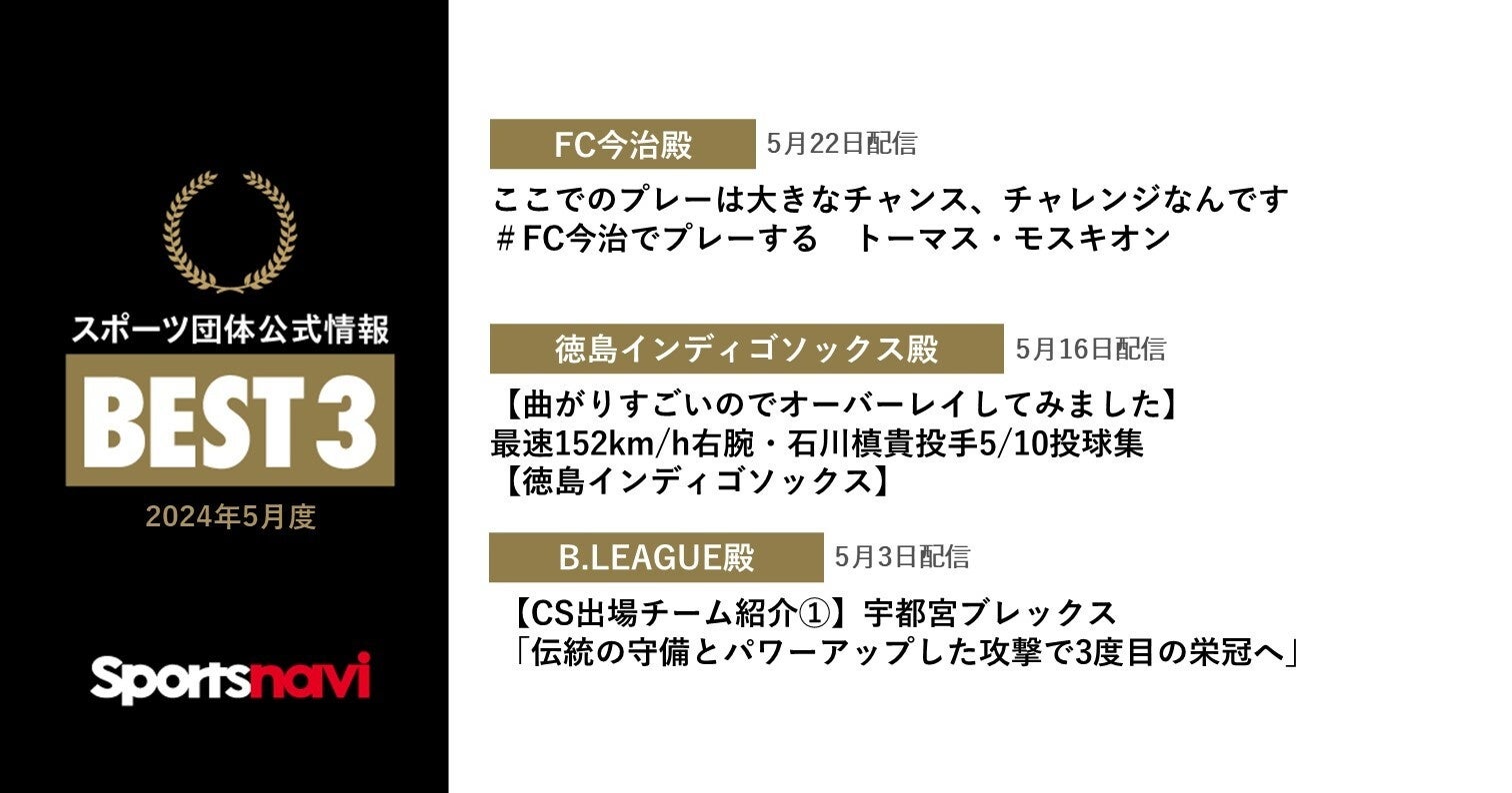 スポーツナビでは毎月、公式情報記事・動画配信において最も印象的だった記事・動画3つを選定し、「スポーツ団体公式記事・動画 月間ベスト3」と称して表彰させていただいております。