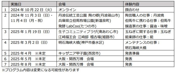 本イベントは、万博に向けた兵庫県の取組みである「ひょうご EXPO DREAM BUILDERS(子どもの夢プロジェクト)」(※)の一環として行うもので、こども達が兵庫県の多岐にわたる産業分野に携わる人々や地域の人の思いを知ることを通じて、創造力や考察力を養い、地域経済の活性化や日本文化の発信について考えることを目的として開催するものです。 本イベントでこども達は、兵庫県万博推進局のキッズ職員として、「ひょうごフィールドパビリオン」に認定された県内各地で、丹波焼や但馬牛、醤油、玉ねぎ、能、明石海峡大橋など兵庫ならではの仕事を体験・調査し、それぞれで学んだことや気づきをまとめます。2024年10月から開始し、ひょうごフィールドパビリオンでのフィールドワークなどを経て、2025年日本国際博覧会(大阪・関西万博)の会場において、兵庫の魅力発信を行います。 兵庫県と KCJ GROUP は、本イベントでの体験を通じて、将来の担い手であるこども達が気候風土に恵まれた兵庫県の土地の特性を体感し、その特色から生まれた食文化や産業を知るとともに、地域への誇りと愛着を醸成し、さらに将来の自分や未来社会について考える機会を得ることを期待しています。