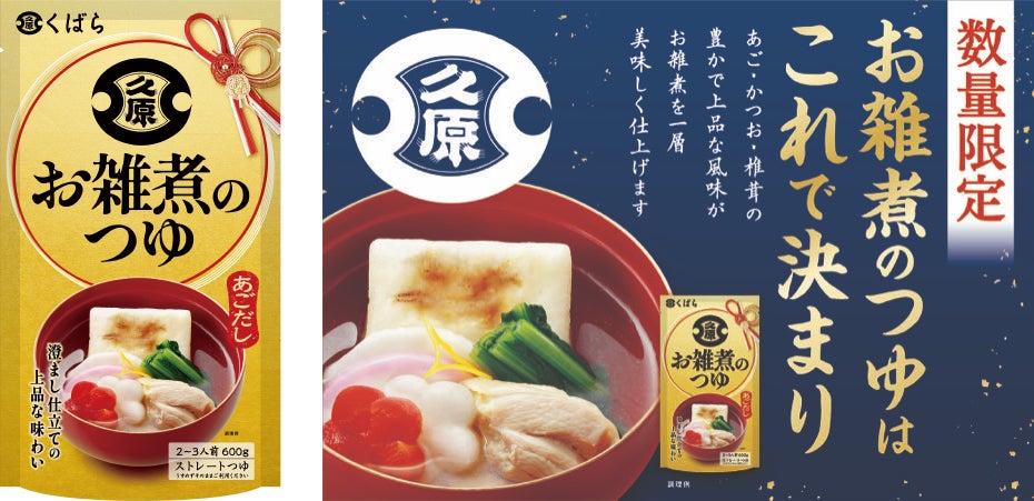 3種の風味で、手軽に上品な風味を実現。くばら【お雑煮のつゆ】数量限定新発売!年末年始の忙しさを解消する、失敗知らずのお雑煮専用つゆ。