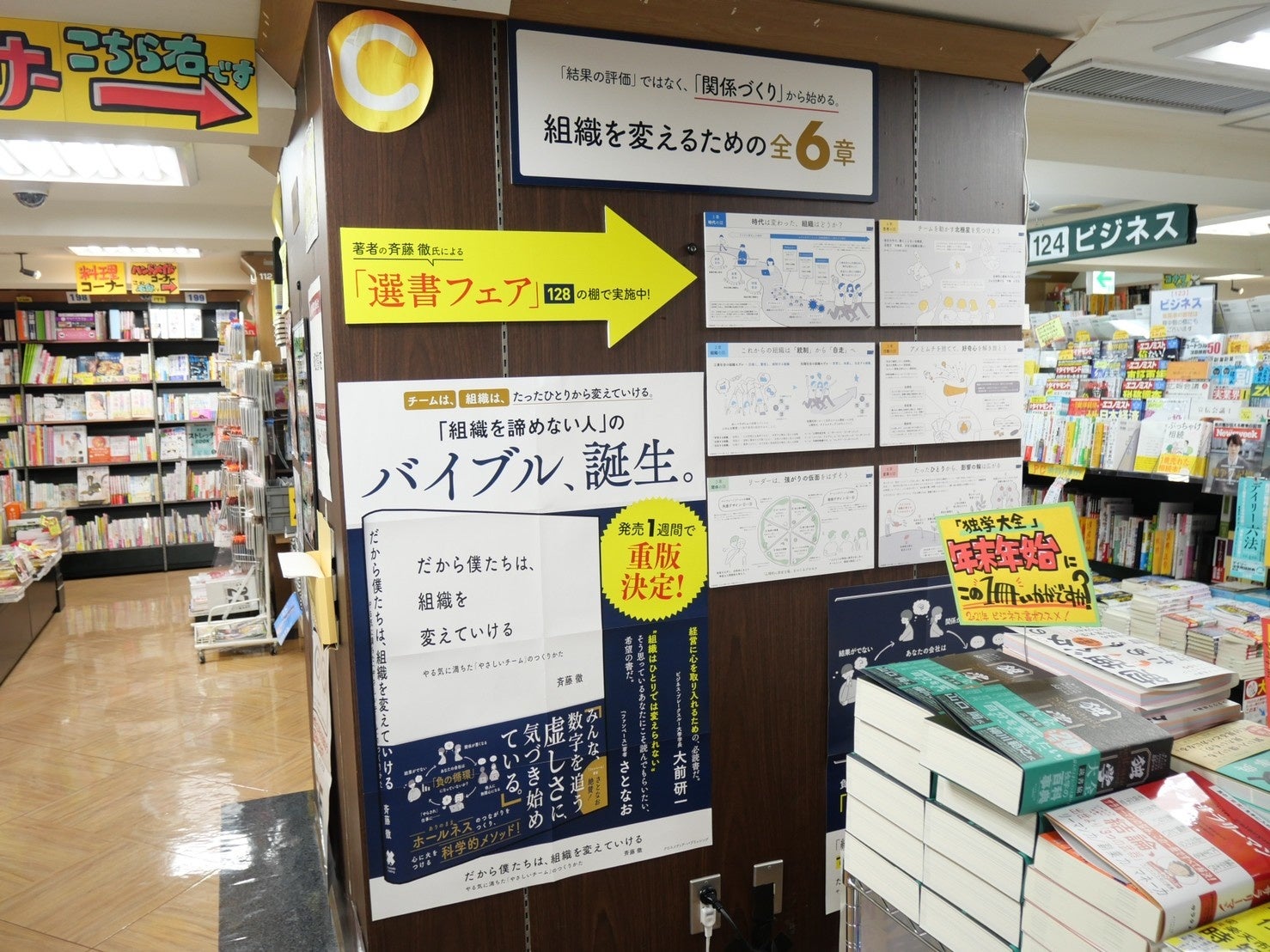 9月26日からは、同書店にて『だから僕たちは、組織を変えていける』のキーコンセプトを、選書とパネルによって立体的に表現するフェアを開催する予定です。(10月12日まで)