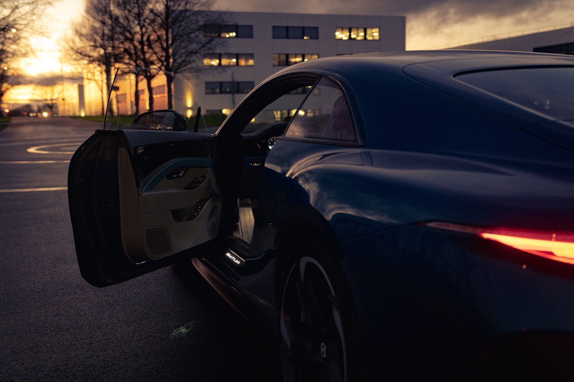 マリナーの手作りのコーチビルトクーペ、ベントレー バトゥールは、ドアから地面に投影されるウェルカムアニメーションシークエンスを提供する新技術を公開しました。
