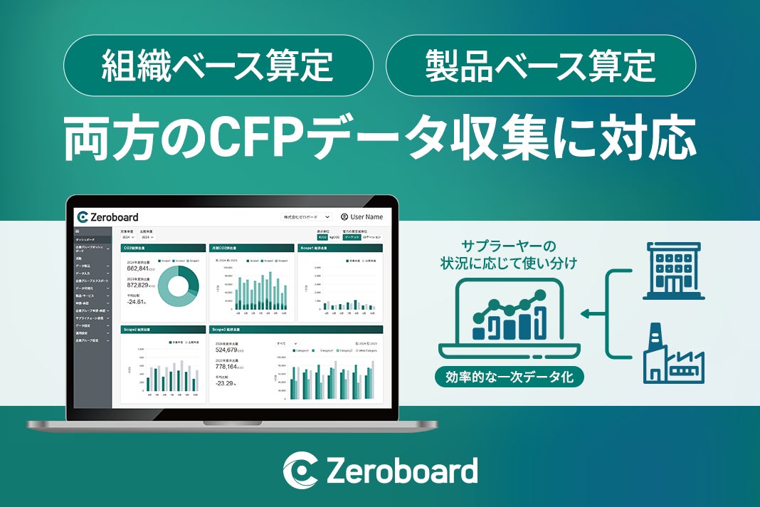 企業のサステナビリティ経営を支援する株式会社ゼロボード(東京都港区、代表取締役:渡慶次道隆、以下 当社)が提供するGHG(温室効果ガス)排出量算定・可視化ソリューション「Zeroboard」は、サプライヤーから受け取るCFP(製品単位のGHG排出量)データについて、組織ベース算定と製品ベース算定のいずれにも対応が可能になりました。