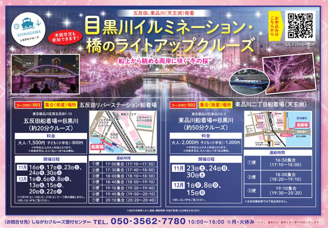 さらに、品川区はクルーズの知名度向上やニーズ、課題の把握を目的とした「しながわクルーズ」事業の中で、12月までの週末を中心にイルミネーション観覧クルーズを運航します。