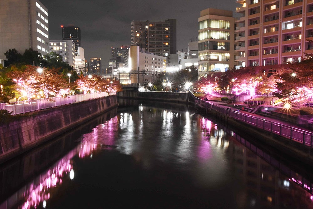 期間中、約35万球の「桜色LED」が点灯し、大崎・五反田エリアの目黒川沿いの歩道(大崎橋~居木橋)両岸合計で総延長約2.2キロメートルにわたり「冬の桜®」が咲き誇ります。