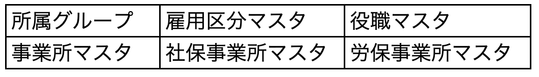 所属グループ | 雇用区分マスタ | 役職マスタ |